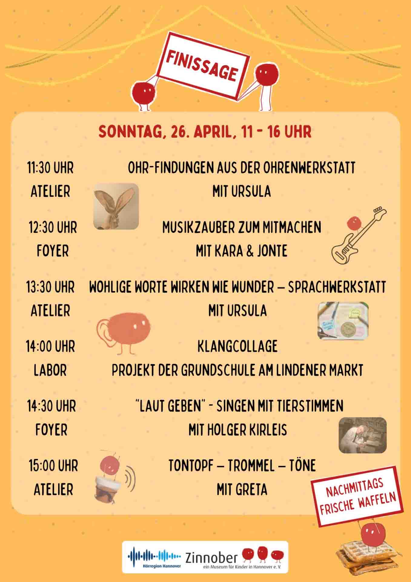 Am Sonntag, 26.04., laden wir zur Finissage unserer Mitmach-Ausstellung „Lauscher, Löffel, Labertasche“ ein. Euch erwartet ein buntes Programm.