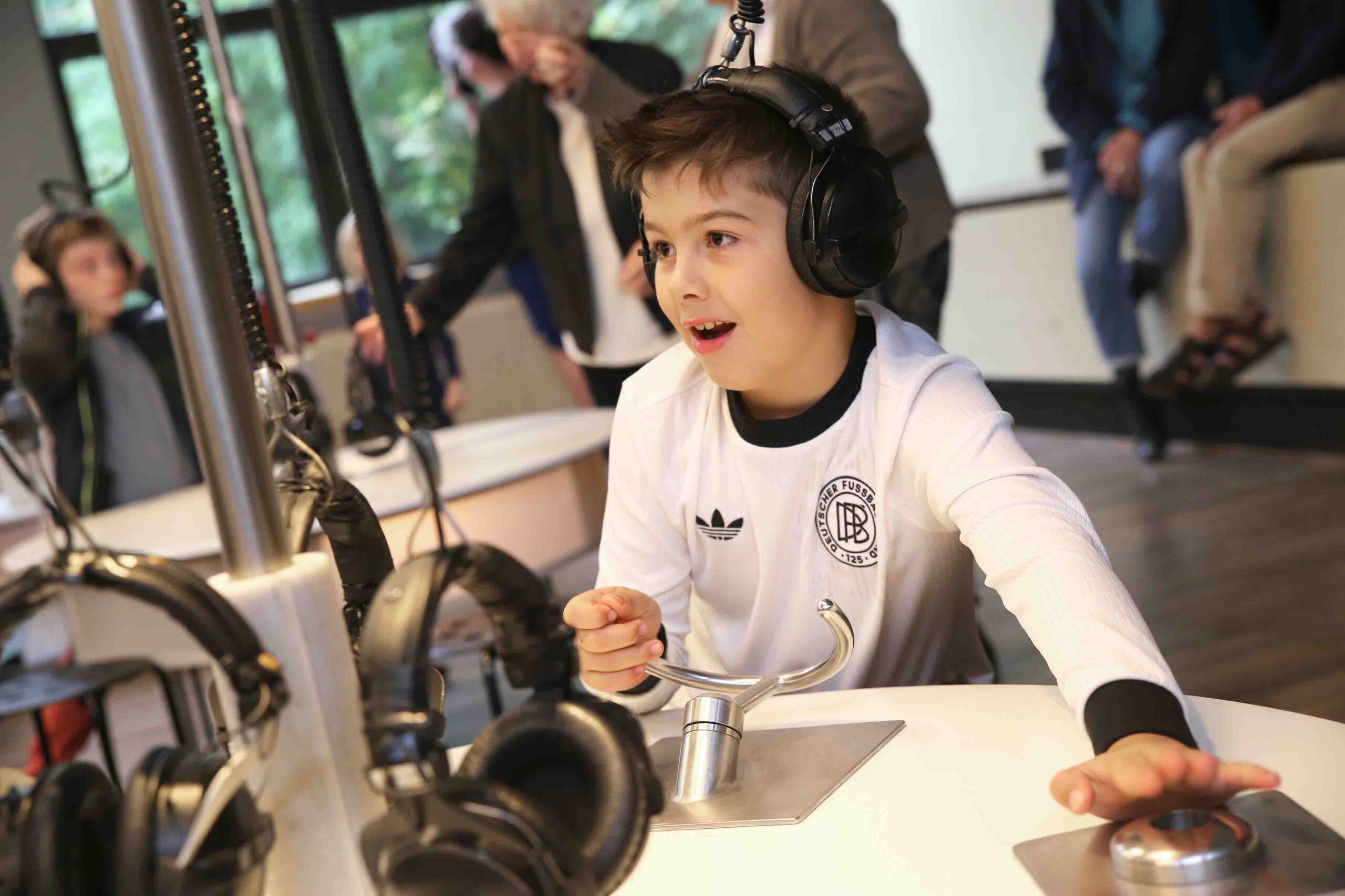 An mehreren Stationen können sich die jungen Besucher*innen und ihre Begleiter*innen kreativ und spielerisch dem Thema Hören nähern. So gibt es ein großes Ohren-Modell und ein Hall-Kristall, mit dem die eigene Stimme verändert werden kann. Auf einem Hörteppich wird eine Art akustisches Memory gespielt. An der Stehenden Welle können Schallwellen sichtbar gemacht und verändert werden. Und das Samplophon spielt verschiedene Geräusche und Klanglandschaften ab.